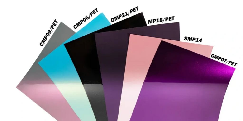 Assorted High Gloss vinyl options. Not ideal for Sharp machines with textured panels. Matte finishes are best on textured panels.